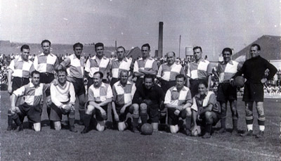 HOMENATGE I COMIAT DE GUAL. 4 ABRIL DE 1943. EQUIP D'EX-JUGADORS FOTOGRAFIA DE JOAN BARBERAN. GRÀCIES JOAN! |