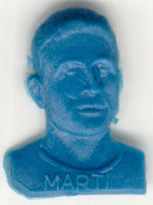 PIN DE PLASTIC DEL JUGADOR MARTIN QUE APAREIXIEN EN LES BOSSES DE "CHURRUCAS". COM A ANECDOTA, SENYALAR QUE DARRERA INDICA "LAS PALMAS" PERO EN EL PIN DE MARTI, JUGADOR DE LAS PALMAS, DARRERA INDICA "SABADELL" ENS HO ENVIA JOSE LUIS MARTINEZ DES DE TRIGUEROS, HUELVA. GRACIES JOSE LUIS! |