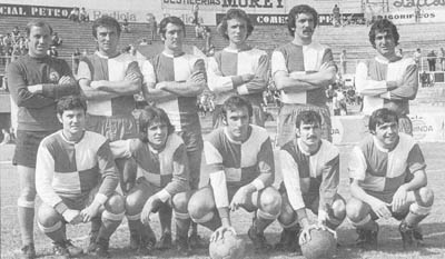 Equip que es va enfrontar al Atl. Balears el dia 6-6-1976 i que va perdre per 2-1 Estava format per: Capó, Santi, Sebastià, Garcia Escribano, Iriarte, Lacampre, José Ma., Silvi, Juanin, Parras i Fernández. Els entrenadors de la temporada van ser Jaurrieta i Pepe Martínez. Màxim golejador de l'equip: Juanin amb 13 gols. Fotografia i dades extrets del llibre "PENYA SABADELL, 25è ANIVERSARI" |
