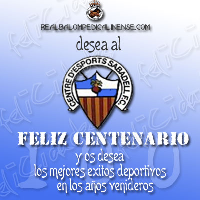 | "El cuerpo directivo del C.D.Benalife, en la persona de Antonio José García Albendín, felicitan al C.E.Sabadell por su centenario, deseándole lo mejor deportivamente y esperando que alcancen los objetivos y verlos pronto en la Primera división del fútbol español por su condición de histórico. Felicidades desde Campamento" Antonio José García Albendín - President C.D. Benalife (San Roque - Cádiz) |