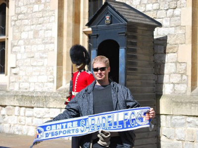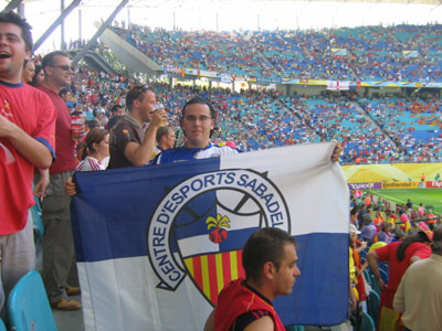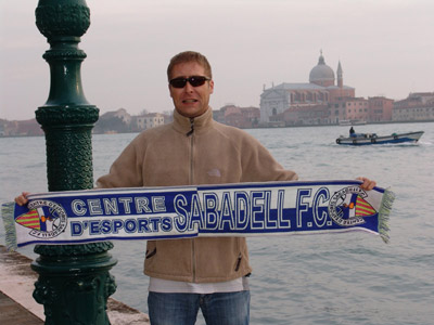 Vem demanar a un senyor que ens fes la foto i només veure la bandera ens va dir: 'Del Sabadell, eh!!' i ens va explicar que l'havia vist jugar al vell Atotxa." |