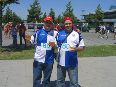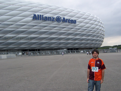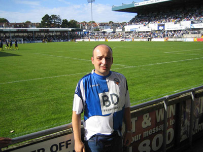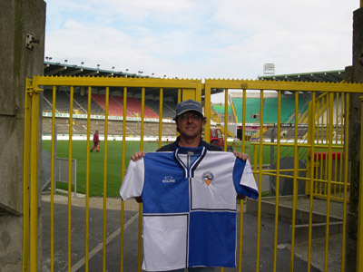 "Hola a tots, sóc el Marc. Aprofitant que estava a Bilbao no em vaig poder estar d'apropar-me a aquest estadi tant mític com és San Mamés, però amb un trist record per tots els arlequinats. Però estic segur que hi tornarem (i si més no al nou San Mamés. Visca el Sabadell!" |