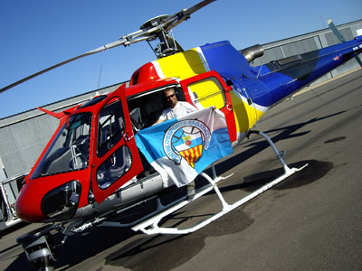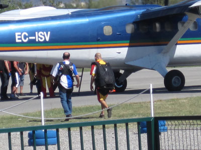 L'AMIC 'VISI' A PUNT D'AGAFAR L'AVIONETA QUE EL DEIXARÀ CAURE A 4.000 METRES D'ALÇADA SOBRE EL CEL D'EMPURIABRAVA. |