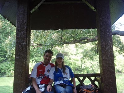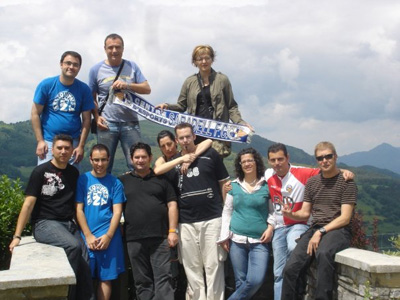 "Amb la colla que ens vem desplaçar a Irun... Començant per dalt i d'esquerra a dreta: Un excelent desplaçament amb molt bona companyia... llastima del 'Sr.' Ortiz Blanco que ens va robar la il·lusio i el resultat La foto esta feta a la bonica Serra d'Aralar, punt on es troben Guipuzkoa i Nafarroa" |