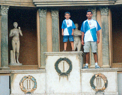 "MurcianoSBD" Y "MurcianitoSBD" PASEANDO LA "ARLEQUINADA" POR EL MISMISIMO OLIMPO DE LOS DIOSES. "La foto esta hecha en Terra Mitica - Benidorm (no hay presupuesto para viajes mas largos como por ejem. Manelinho, jeje), pero no fue problema para lucir tanto mi sobrino, que no vive en Sabadell, como yo la camiseta que mostramos con tanto orgullo. " |