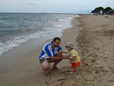 El debut d'Arnal Escribà en aquesta secció: Junt amb el seu pare, Manelinho, a la platja de Cambrils. Fent la foto, la mare, la Glòria. |