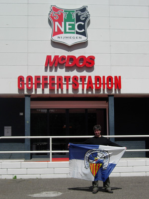 "Hola, sóc l'Abel i aquesta foto me la vaig fer durant les vacances a Albacete. Concretament, són els exteriors de l'estadi Carlos Belmonte (un estadi que potser háuríem pogut visitar la propera temporada si no hagués passat allò que tots ja sabem...). Malauradament, el camp estava tancat i no vaig poder visitar-lo per dins, així que vaig haver de conformar-me a fer-me la foto des de fora." |
